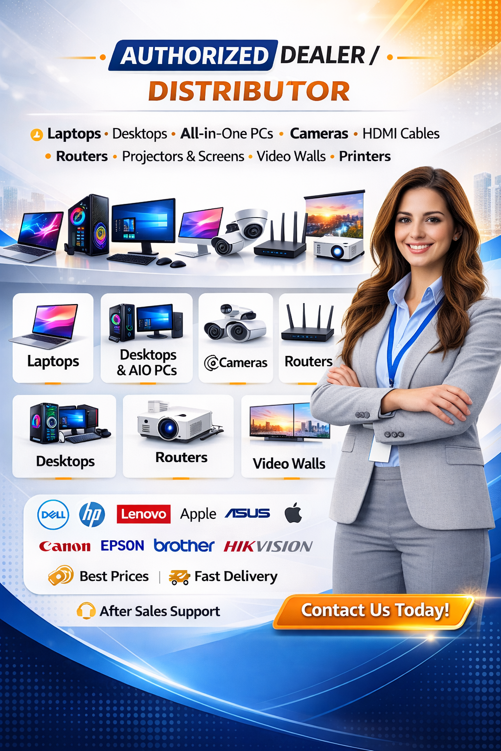 Additionally, we provide projectors, projector screens, video wall display systems, and printers for conference rooms, classrooms, control centers, and digital presentation setups. As an authorized dealer, reseller, and supplier, we focus on delivering genuine products, competitive pricing, and dependable technical support.
